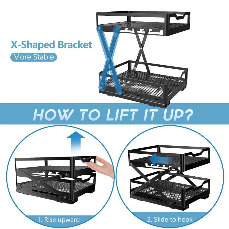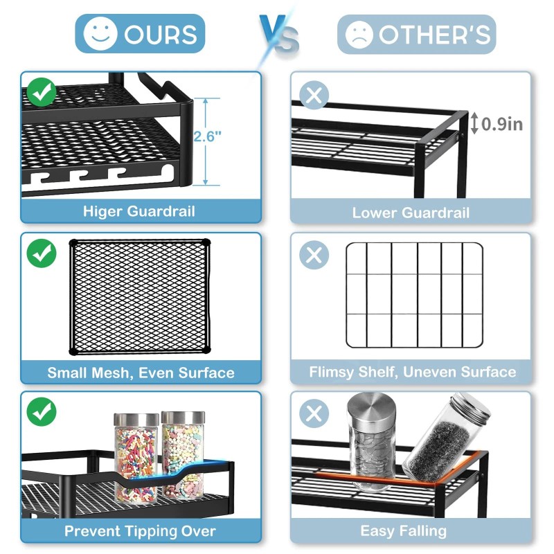 HEAVY DUTY METAL: Our sliding spice rack for cabinet is made of rustproof metal, excellent strength ensure durability and sturdiness. Sturdy layer with a mesh surface that can keep bottles stable and not easy to fall