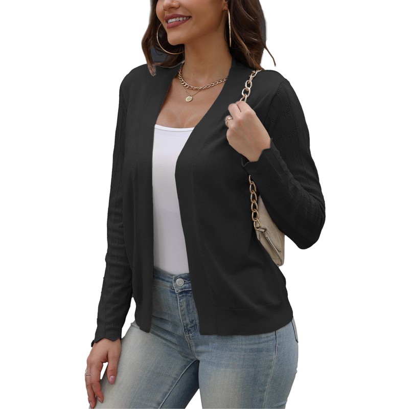 VOIANLIMO Womens Cardigan Lightweight Open Front Knit Long Sleeve Cardigans Sweaters for Women, Black, Small