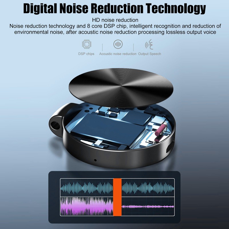 1、ZINC ALLOY: Portable voice recorder using a one piece all zinc alloy structure, outstanding texture, wear resistant impact resistance. 2、ONE BUTTON OPERATION: Voice recorder on the recorder, timely recording, fast recording scene, suitable for learning and work use, simple operation. 3、NOISE REDUCTION: Voice activated recorder is equipped with an eight core DSP acoustic processor, helping to filter background noise, recording more clearly. 4、ENCRYPTION TECHNOLOGY: Voice recorder MP3 player is equipped with encryption technology program, effective protection of files, record their own diary files. 5、VOICE ACTIVATED: Digital voice recorder automatically records when there is sound and pauses recording when there is no sound. 6、SEGMENTED RECORDING: Segmented recording function, you can set the length of the recording to save in segments, saving memory.