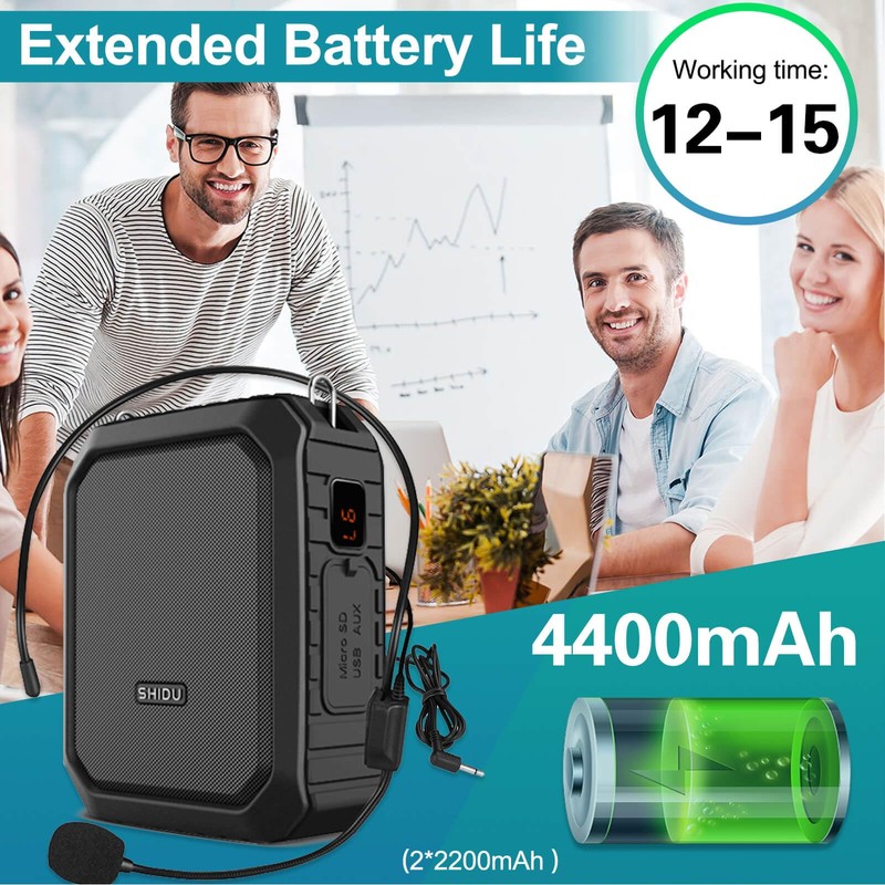 - 【Waterproof Personal Pa System】 - The megaphone speaker is powered by 4400mah rechargeable ultra-large capacity battery, which can play for up to 15 hours on a full charge. Low power consumption&high performance batteries greatly reduce your charging frequency.