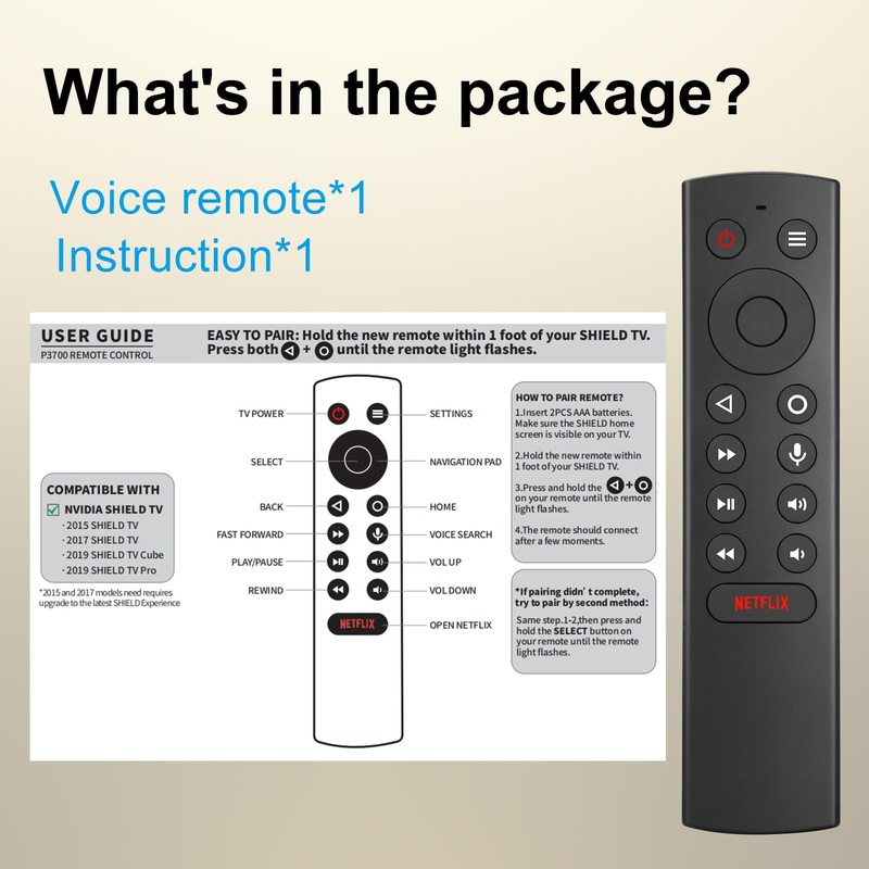 - 【TV Specification】Remote works with SHIELD TV 2015/2017/2019 all models streaming media players (base requires upgrade to latest SHIELD Experience), compatible models including for 2015 NVIDIA SHIELD TV, for 2017 NVIDIA SHIELD TV, for 2019 NVIDIA SHIELD TV Cube and for 2019 NVIDIA SHIELD TV Pro