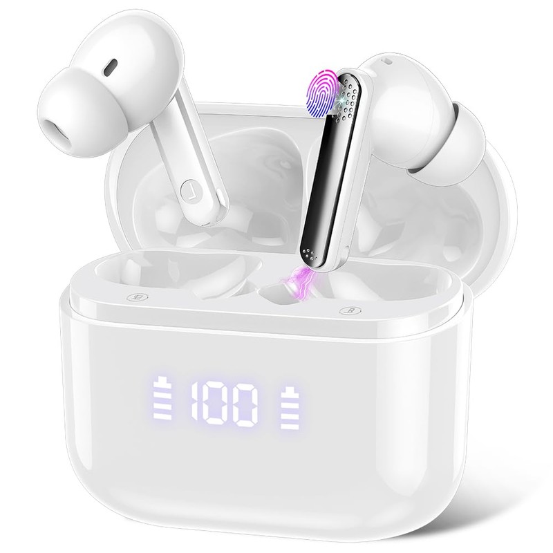 Voice Translator Earphones, 164 Languages AI Intelligent Bluetooth Translation Earbuds, HD Noise Reduction In-Ear Translator Touch Headphones with App, Supports Two-Way Translation, White