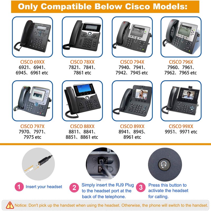 - ONLY For Cisco 6921, 6941, 6945, 6961, 7940, 7940G, 7941, 7941G,7942G, 7945, 7945G, 7960, 7960G, 7961, 7961G, 7965G, 7970G, 7971G, 7975G, 7985G 8941, 8945, 8961, 9951, 9971 IP Phones.