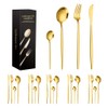 VOICEPTT Juego de cubiertos de acero inoxidable de 24 piezas, Tenedor, Cuchara, Cuchillo, Set de cubiertos para 6 personas, Aptas para el lavavajillas (Oro)