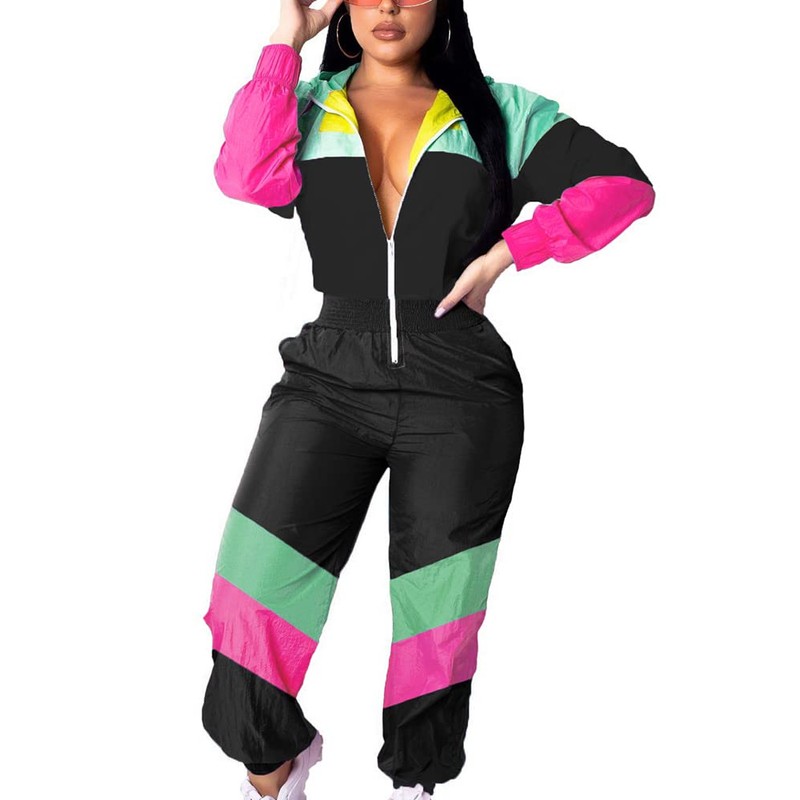 • Spandex poliéster, color brillante, tela cortavientos para ser delgado y ligero, 2 piezas Trajes Conjunto de Chándal Jogging Traje overol Mono Peleles para todas las estaciones