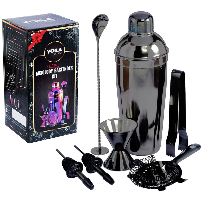Voila Artisan 11 Pcs Premium Cocktail Shaker Set Bartender Kit, Black