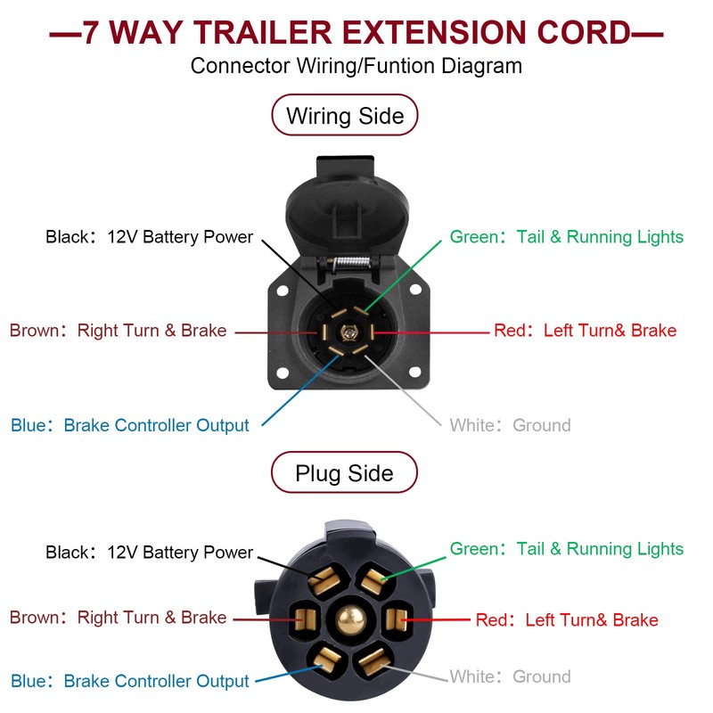 • SPLICING WIRING INSTRUCTIONS:Please carefully read the user manual before any operations on the 7 way trailer plug extension.due to different trailer manufacturers, please check if the color of the 7 way trailer extension cordwiring may not match the color of your trailer