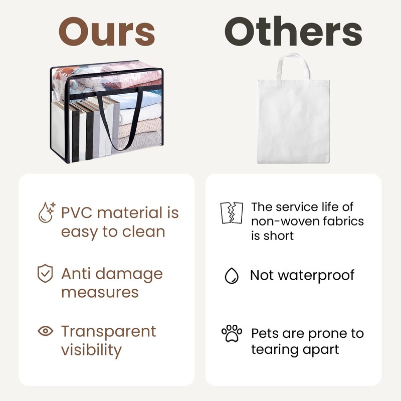- Durable & Clear Design: Made from high-quality PVC material, these clear plastic storage bags provide visibility for easy content identification while maintaining long-lasting durability.