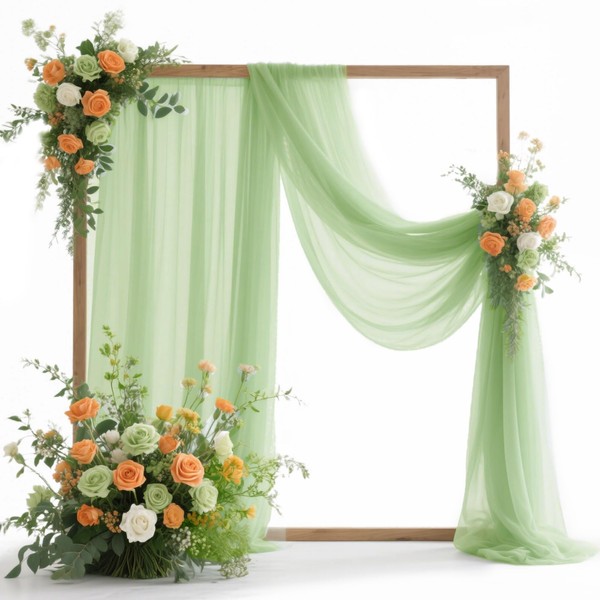 VOK Wedding Arch Draping Fabric Chiffon Fabric, 29in x 18Ft 2 Panels Sheer Chiffon Outdoor Curtain for Wedding Ceremony Birthday Party Decoration (Sage Green,2 Panel)