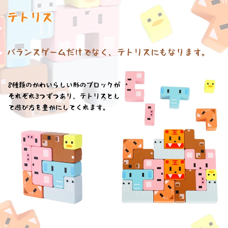 - It's a very interesting balance game. You can play alone or with your relatives and friends. Not only is it a balance game, but the colorful blocks can also be used as building blocks. By guessing and thinking where and how to balance the blocks together, they develop a sense of shape and enhance creativity