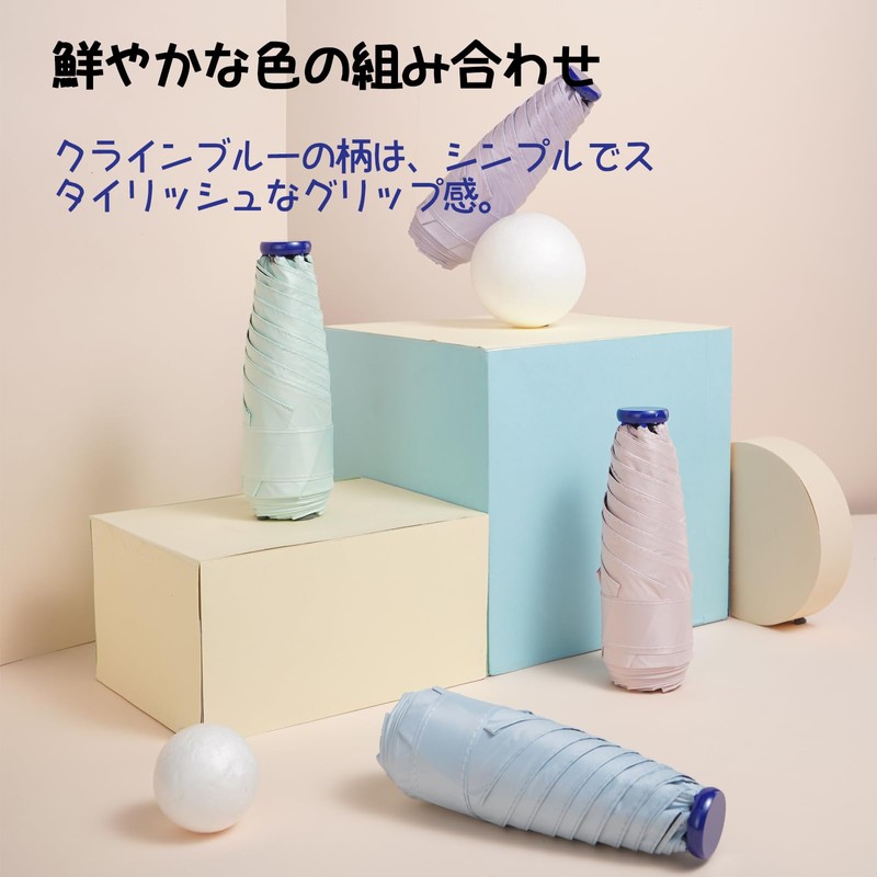 Vokiuler Folding Umbrella, Compact, 5.3 oz (150 g), Lightweight Parasol, UV Protection, 100% Light Blocking, Klein Blue, Ladies & Children, Folding Parasol, Small, 6.1 inches (15.5 cm), Easy to Fold,