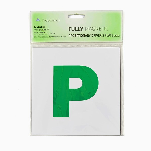 Volcanics Fully Magnetic P Plates 2 Pack Green Probationary P Plates for New Drivers Extra Strong Magnet Universal Easy Fit