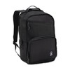 - 3 compartment backpack Lower front zipper pocket w/ organizer and internal keyclip Elastic compression water bottle pockets