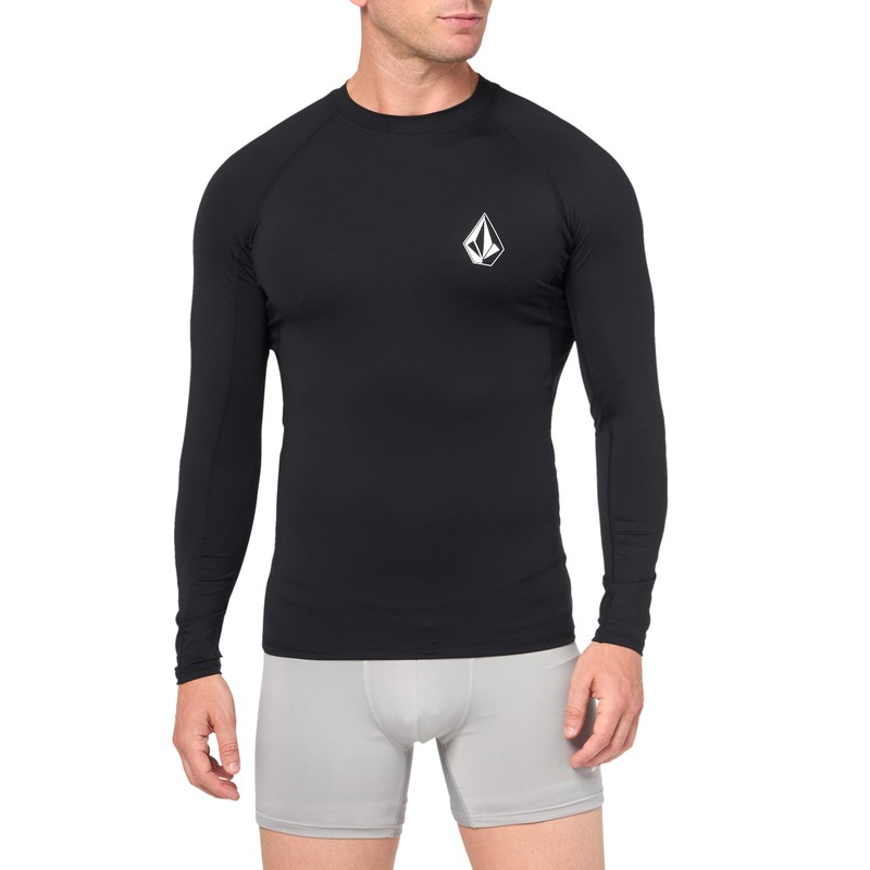 Volcom Men's Solid UPF 50+ Long Sleeve Rashguard, Black Stone, Small