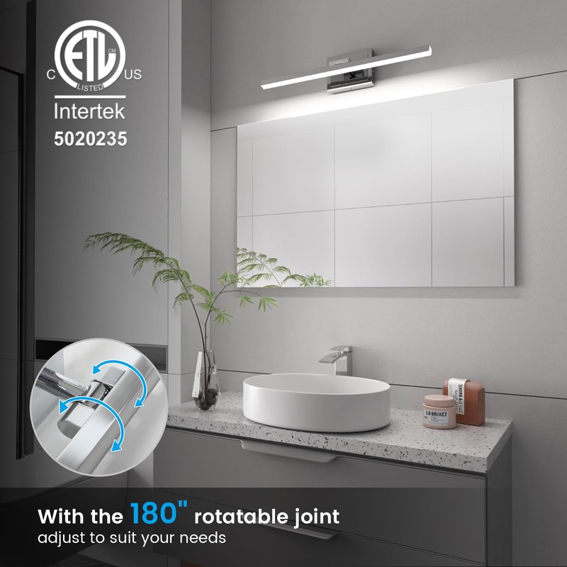 - 【High Quality】: ETL Certificated for all bathroom light fixture. Made of high-quality metal back panel and pure white acrylic, with IP44 waterproof and dust proof capacity, bathroom light over mirror is suitable for humid environment. ETL Certificated for power driver.