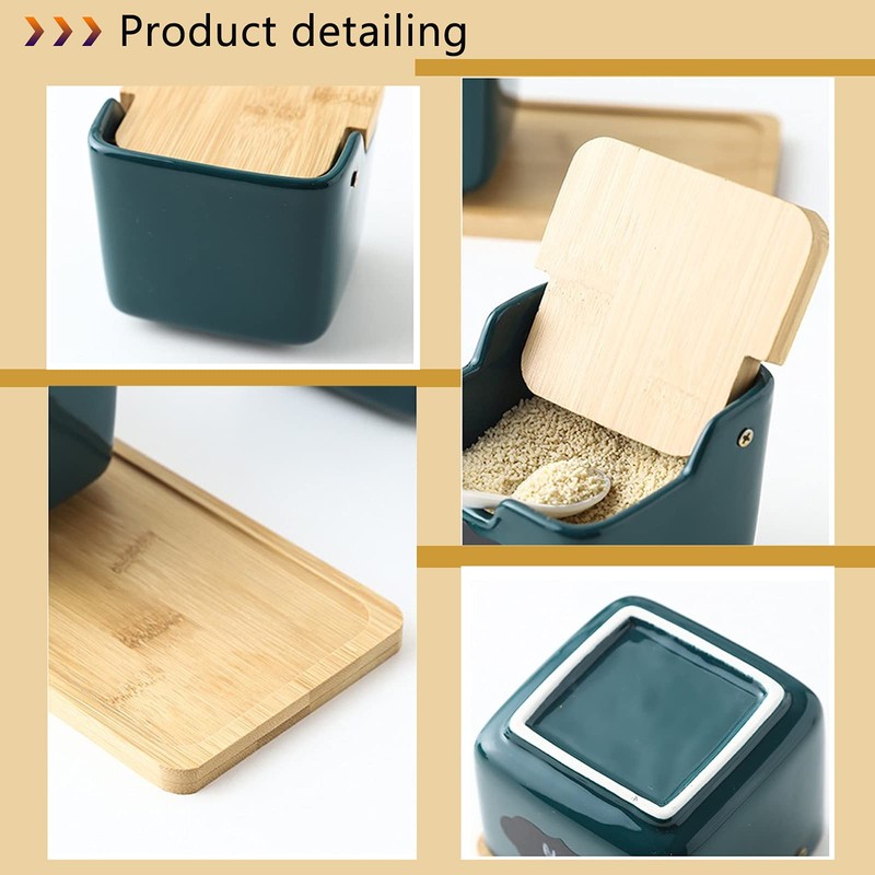 - ♈【High Quality Materials】: The set is made of high-quality Ceramic and wooden, Spice jar is made of eco-friendly ceramic, food-grade glaze, health non-toxic, easy cleaning.
