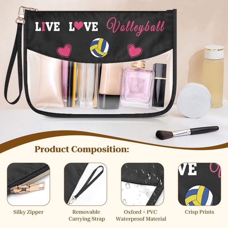- Volleyball Player Gifts for Women:Our cosmetic bag is made of PVC and Oxford cloth, simple and generous design, high quality zipper makes the bag easy to open and close, transparent window design allows you to quickly browse the contents of the inside, removable wrist strap makes you more convenient to use, is a practical organizer for travel! THIS ITEM IS NOT INTENDED FOR USE BY CHILDREN 12 AND UNDER.