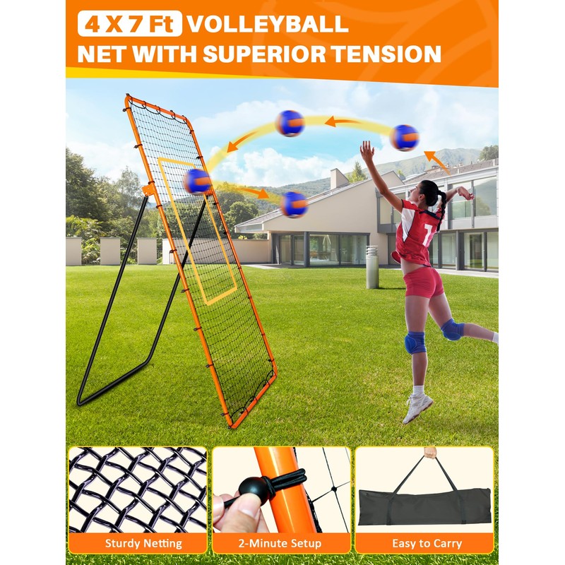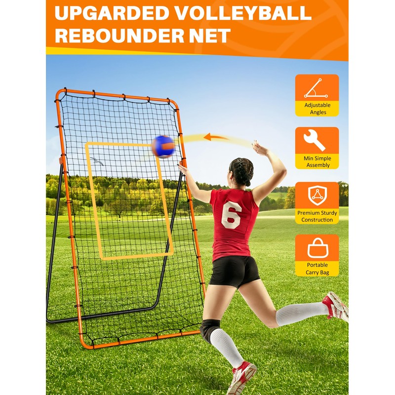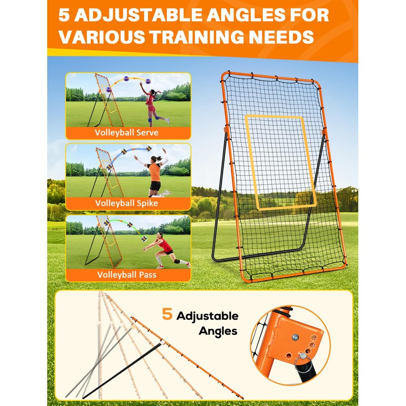 - Game-Changing Training for Every Skill Level:Take your volleyball skills to the next level with our adjustable rebounder net, offering a massive 28 sq. ft. of rebounding surface. Perfect for spiking, volleying, and passing, its customizable angles (85°, 75°, 60°, 45°) allow you to simulate real-game scenarios. Designed for players of all ages and abilities, this versatile net is your ultimate training partner, ensuring consistent improvement and confidence on the court.