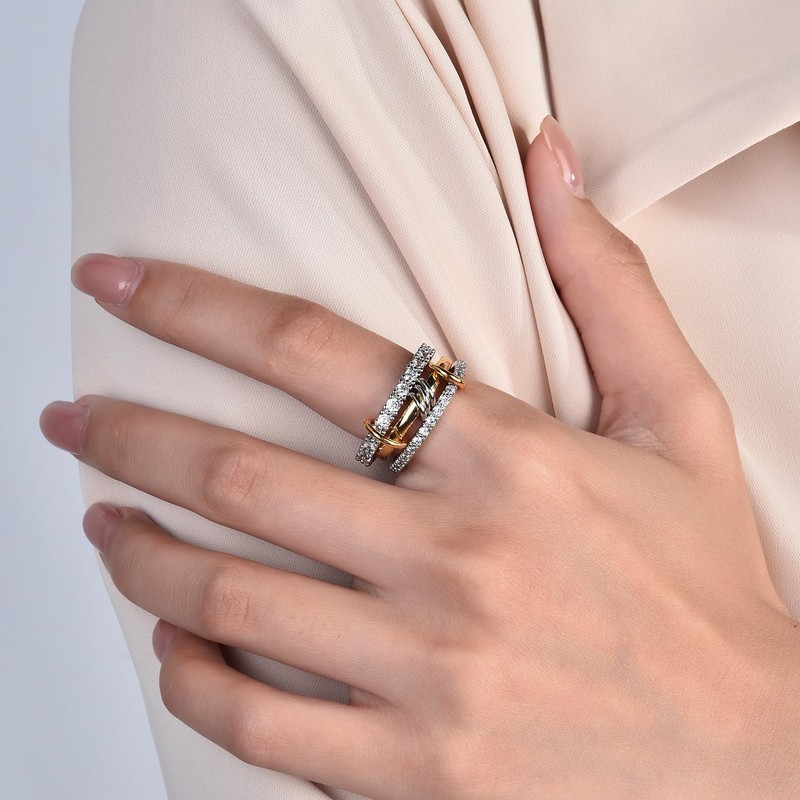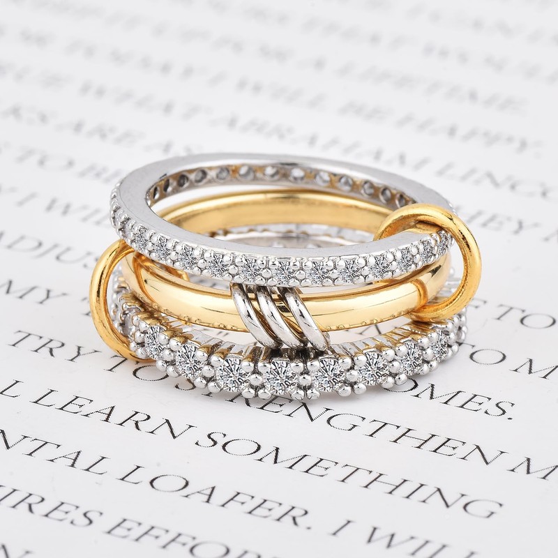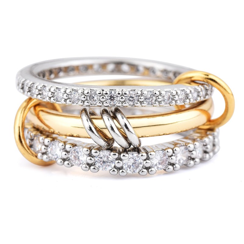 VOLLYOO Gold Stackable Rings for Women Non Tarnish Dainty 14k Gold Plated Chunky CZ Cubic Zirconia Rings Silver and Gold Ring Set Multi-Link Connected Rings 8