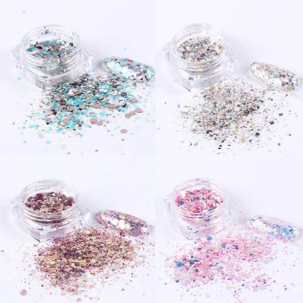 Hecho de material seguro, no destiñe, inofensivo y ecológico.; 48 colores diferentes; decora tus uñas como quieras; También puedes utilizar este producto para decorar tu casa, funda de celular, lentes, tarjetas, cuerpo, etc.; Brillo natural, delicado y a la moda.; Adecuado para uso personal o profesional. Todos nuestros productos estan en inglés SKU 1042200636