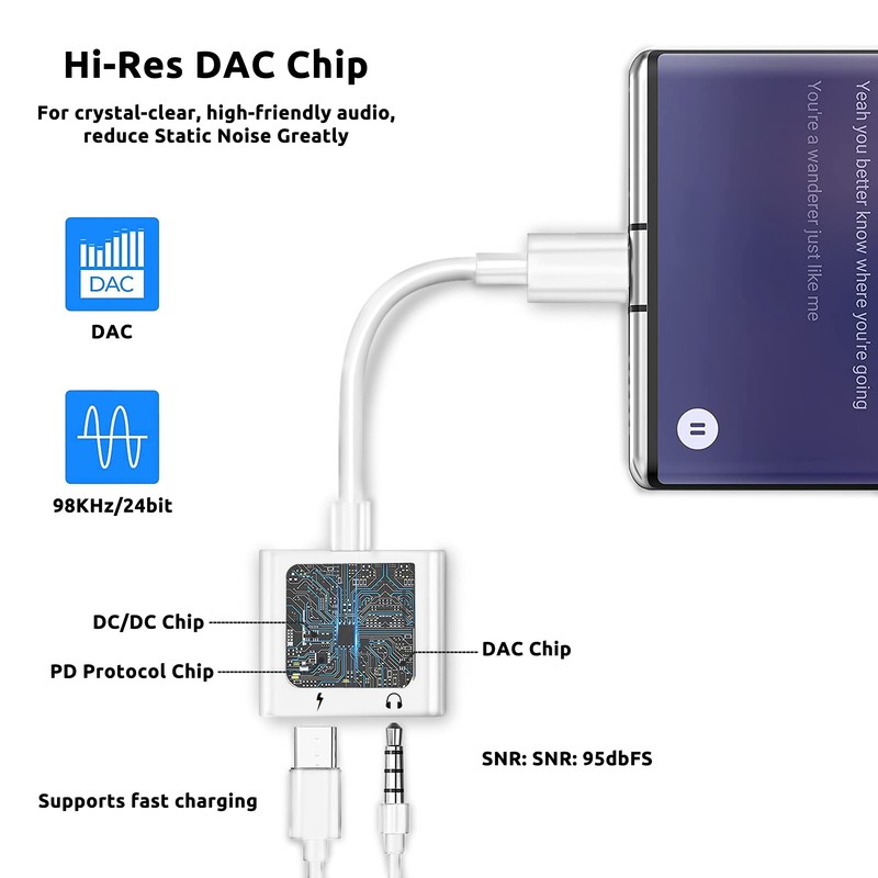 - ▶HIGH-RES AUDIO CHIP: This headphone jack adapter has a built-in Realtek DAC audio chip which processes the digital signal into high resolution sound and supports up to 24bit/192kHz audio output with low power consumption to ensure smooth and clear audio transmission.This upgraded dongle has superb noise reduction quality.