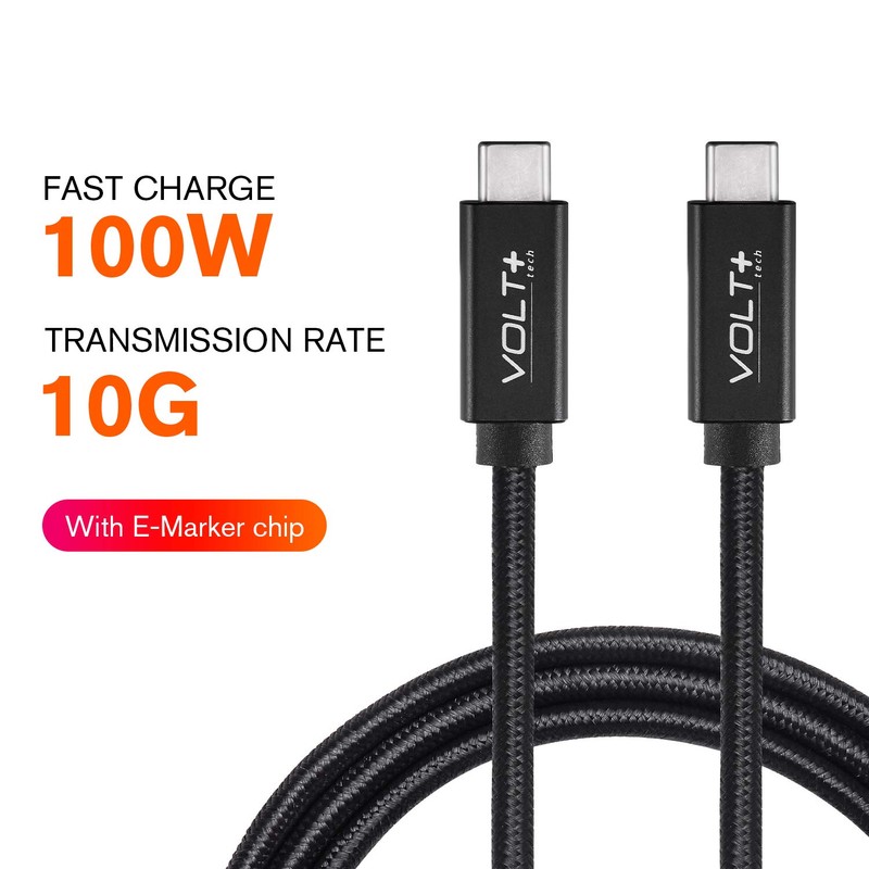 Volt Plus Tech's PD PD dual USB-C USB-C Gen2 USB 3.1 Certified Cable features an aesthetically pleasing and functional aluminum housing with our mesh SR designed withstand heavy-duty use and resist numerous pull-plug wear and tear. It supports USB 3.1 Gen2 data transfer SuperSpeed+ up to10Gbits. USB-C C Gen2 cable has E-marker IC inside, allowing it support PD 3.0 charging; a max power of 100W and up 20Volts and 5A of charging output. Meeting all the USB-C specifications will ensure the cable stability and reliability.