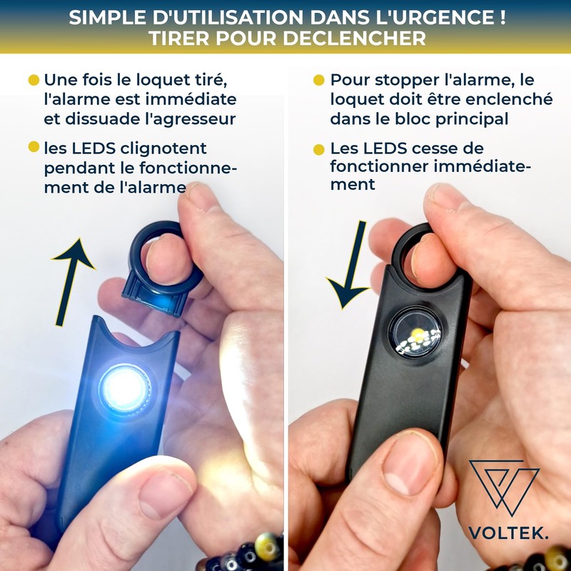 - Immediate warning, dismantling & leak - With 135dB, the most powerful alarm allowed for its size, it immediately surprises and destabilizes the aggressor, while alerting people around. Perfect for women, children, the elderly and joggers in the face of urban threats. Complete BUNDLE: Alarm + Guide + Emergency Whistle