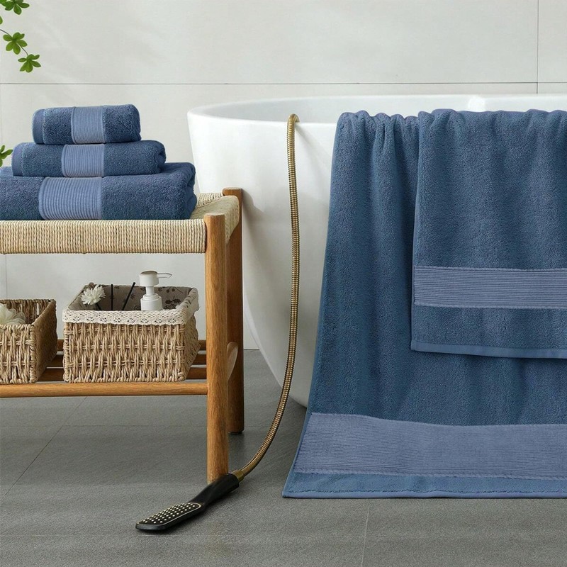 - Elegant Design in Three Colors: Available in classic blue, white, and gray, the towel set complements any bathroom decor. The elegant embroidery adds a touch of sophistication, making these towels not only functional but also visually appealing.
