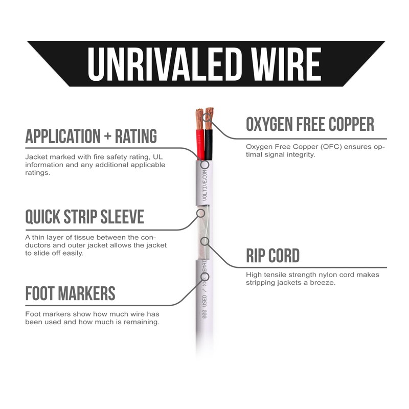 - TIME SAVING FEATURES. Quick-strip sleeve & ripcord reduce installation time. Jacket is printed with UL information, re-order part number, and foot markers which indicate precisely how much wire has been used and how much is remaining.