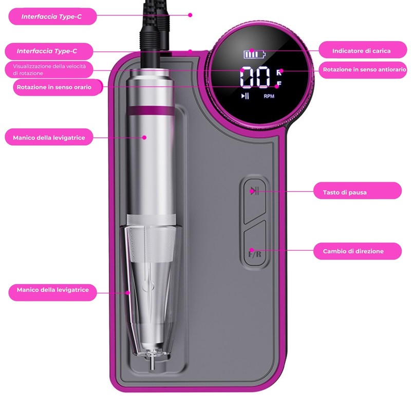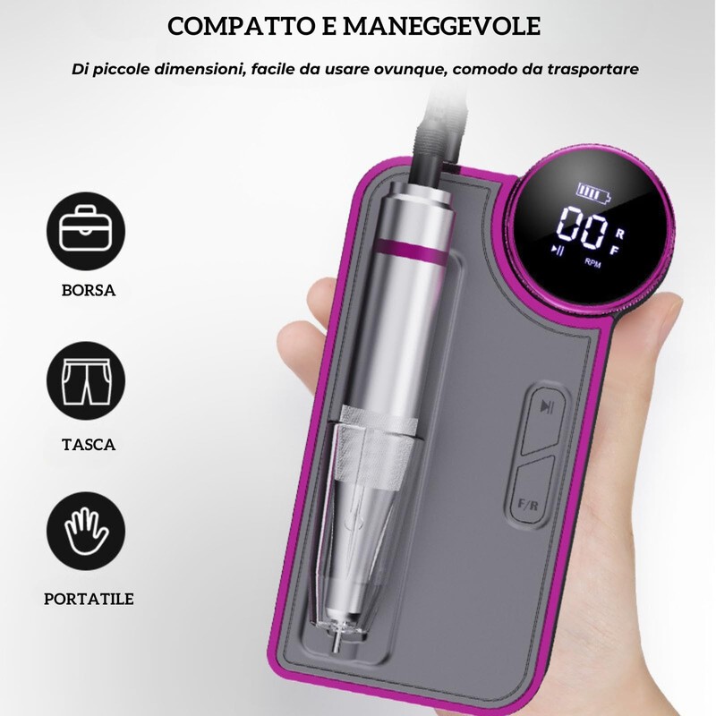 - 【Wiederaufladbarer Akku für mehr Mobilität】Ausgestattet mit einem langlebigen wiederaufladbaren Akku, bietet diese professionelle Nagelfeile die Freiheit, ohne Kabel zu arbeiten. Ideal für Profis unterwegs oder für alle, die ein kabelloses Maniküreerlebnis zu Hause wünschen.