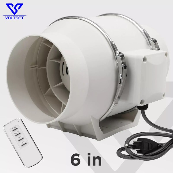 Voltset 6 Inch Duct Fan - 390 CFM Inline Ventilation Exhaust Fan with Remote Control