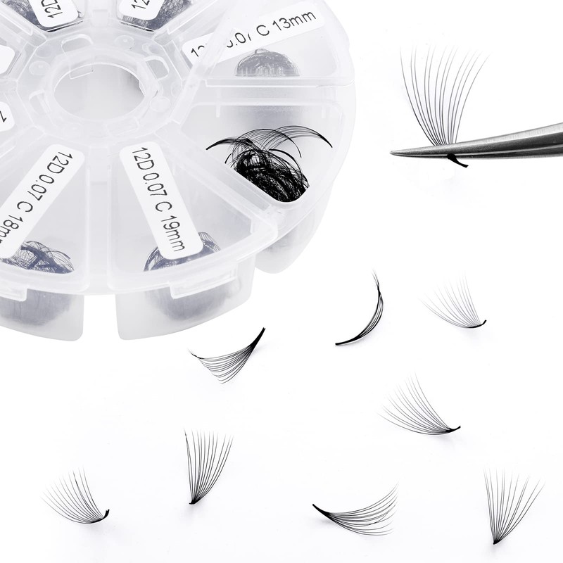 - PREMADE FANS MIXED LENGTHS: WENDYLASHES professional premade fans eyelashes extension set come with 8 compartments in a box, each portion approximately contains 60 fans which length ranges are from 13 to 20mm, you can apply for up to 6-8 clients depending on how many lashes are applied and desired styles.