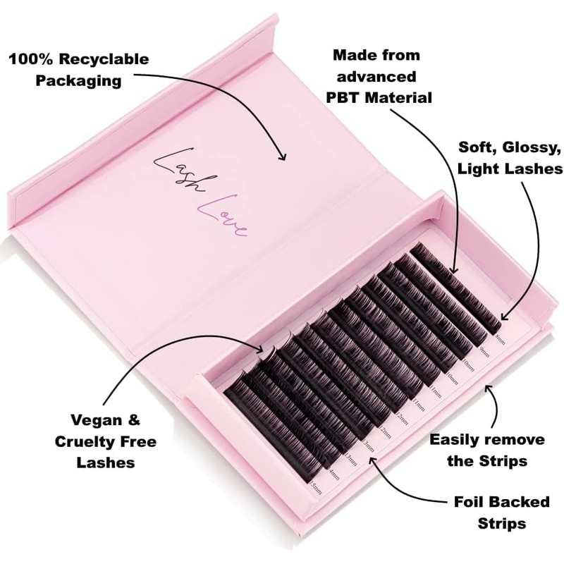 - Lightweight, soft, strong, glossy individual lash extensions.