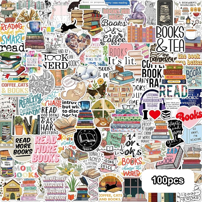 Volumoon Bookish Stickers, Pack of 100 Book Stickers, Aesthetic Stickers, Reading Stickers, Vinyl Stickers for Scrapbooking, Laptops, Water Bottles, Computers, Fridges, Luggage