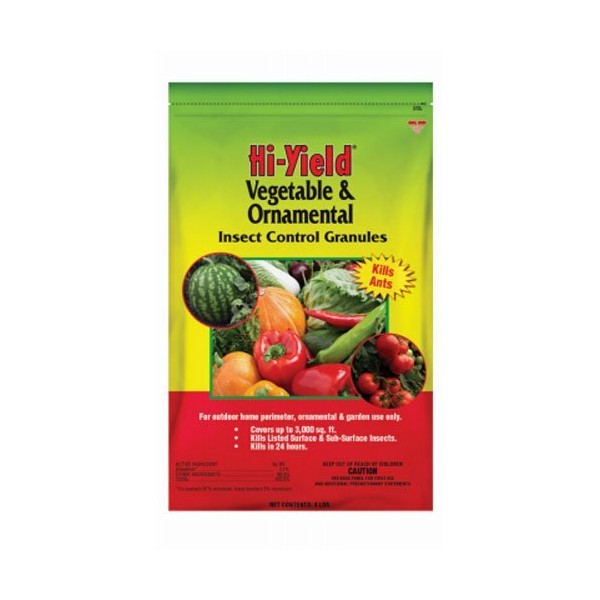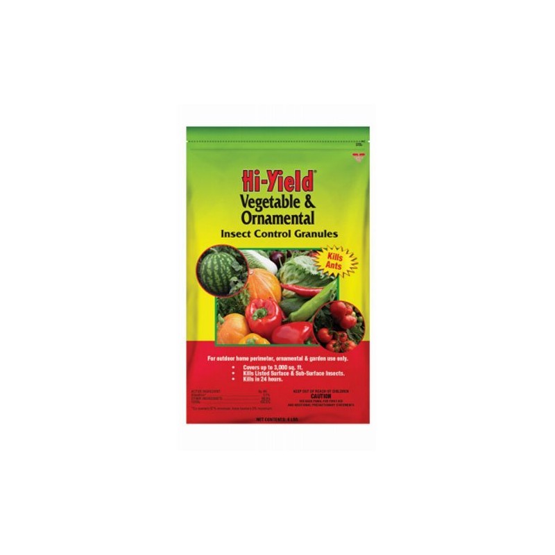 Hi-yield 32325 vegetable and ornamental insect control granules 4 lb is ready to use as a granular insecticide to control various insects and spiders. use it around the home perimeter and on ornamental plants and flower gardens. effective on ants, mealy bugs, weevils, crickets, cutworms, earwigs, seed maggots and other common pests. four-Pound container treats up to 3000 square- Feet.