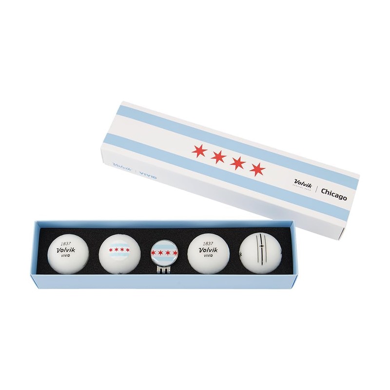 Volvik City Chicago Pack- 4 Vivid Balls Pack (4 White) with a Clip Ball Marker