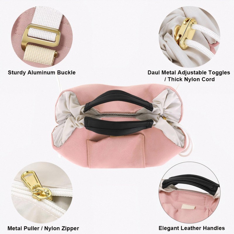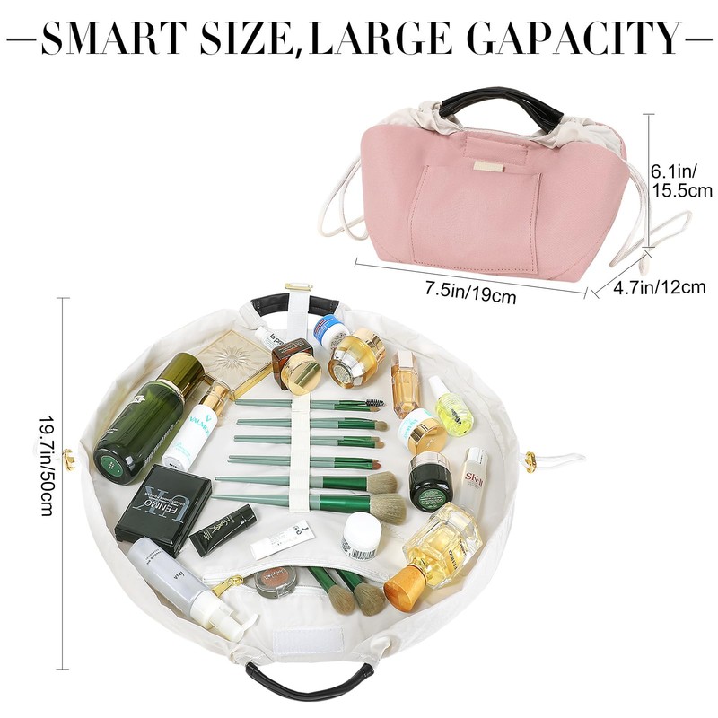 Vomgomfom 20 inch Drawstring Makeup Bag Open Flat,Waterproof Magic Cosmetic Pouch for Women,Pink