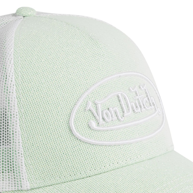 Von Dutch Men's & Women's Adjustable Cap, Shiny Trucker Cap (Shiny Effect), Pale Green/White, One Size