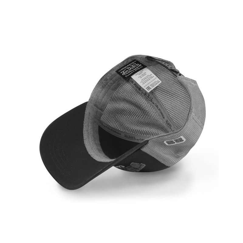 The Von Dutch Terry Trucker Cap in black and grey from the Terry collection is a model that combines simplicity and character. The Von Dutch logo embossed on the front stands out against the black background, bringing a touch of sophistication to this cap. The visor and front of the cap, both in black, contrast subtly with the grey net, providing a balanced design. Thanks to its sweat-wicking protective band, it ensures long-lasting comfort, even on the hottest days. The Snapback adjustment system allows for a perfect fit for head circumference of 55.5 cm to 60 cm.