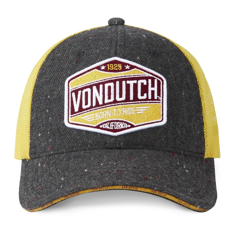 Von Dutch Unisex Adjustable Trucker Cap for Men and Women, Dark Grey/Yellow