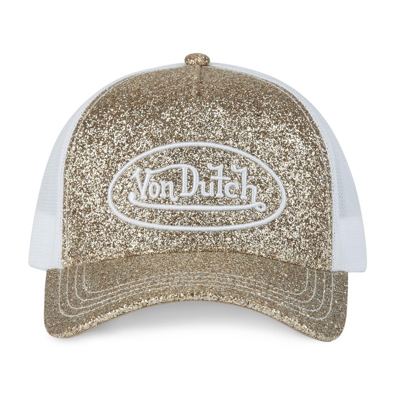 Von Dutch Unisex Adjustable Trucker Cap with Glitter Sequins Gold White One Size, Gold/White, Unit size