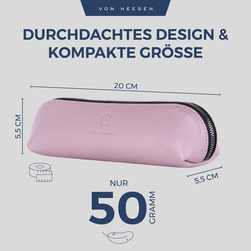 VON HEESEN® Genuine Leather Pencil Case Leather Pencil Case for Pens Pencil Case School Pencil Case Plain Pencil Case, lavender, Elegant
