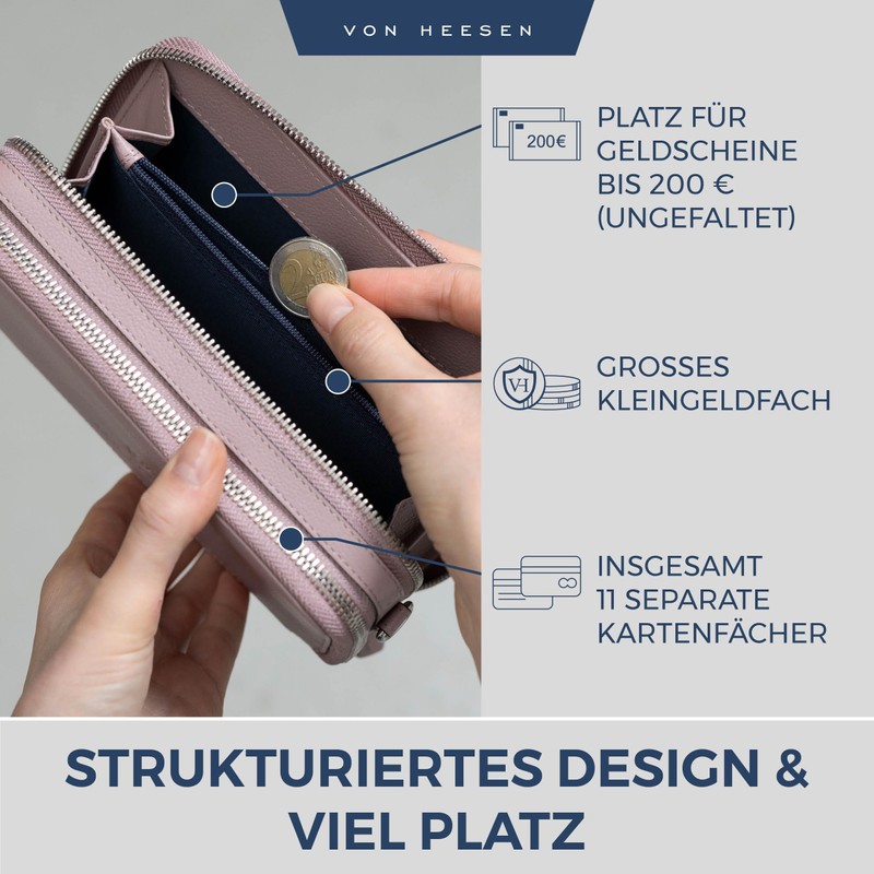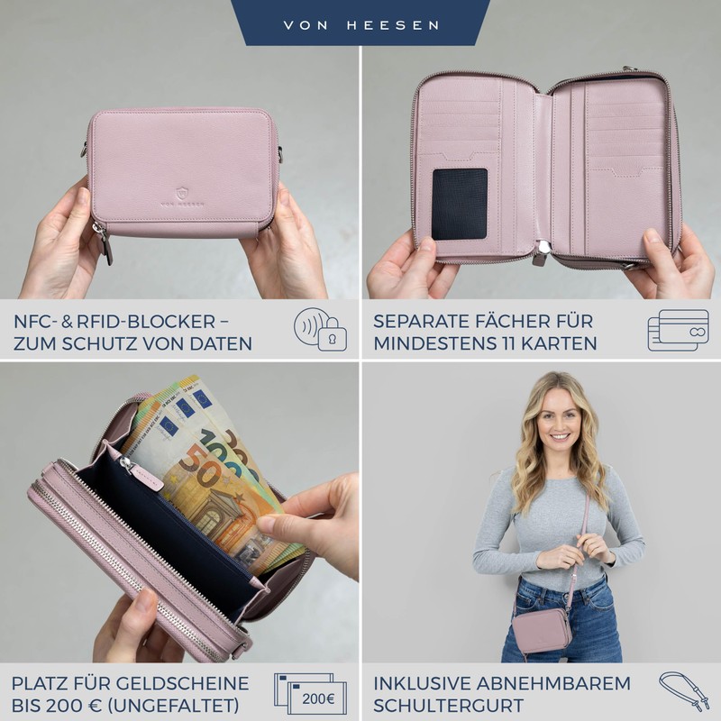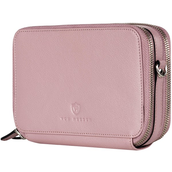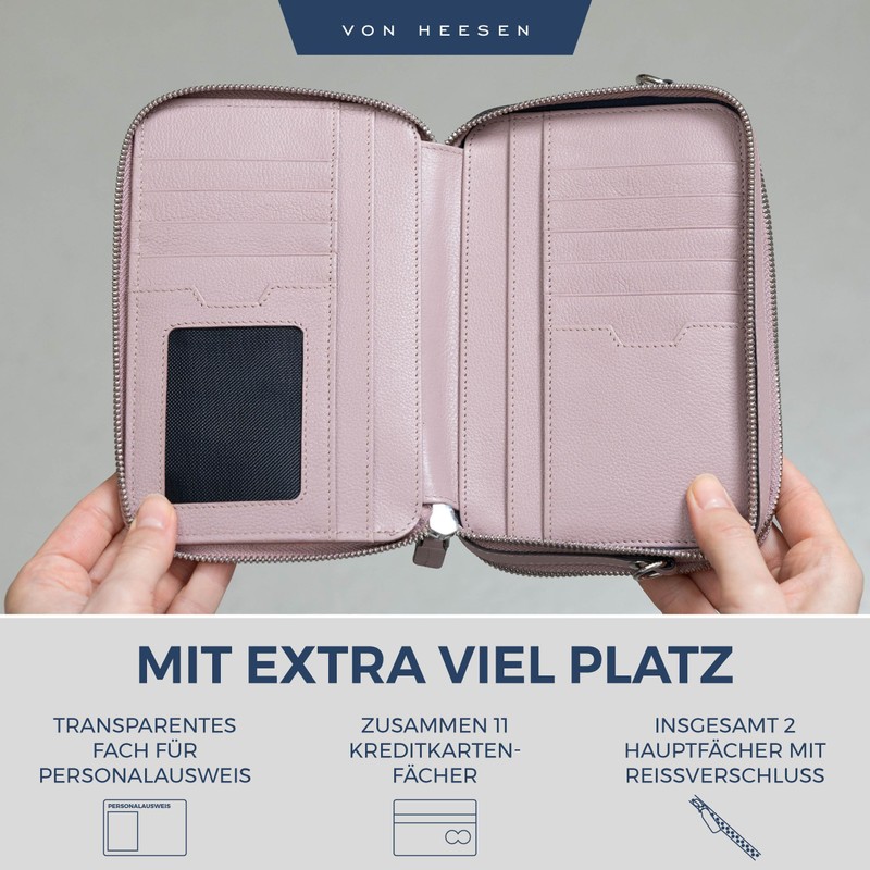 VON HEESEN Leather Wallet for Men and Women, lavender, 2 main compartments (for hanging)