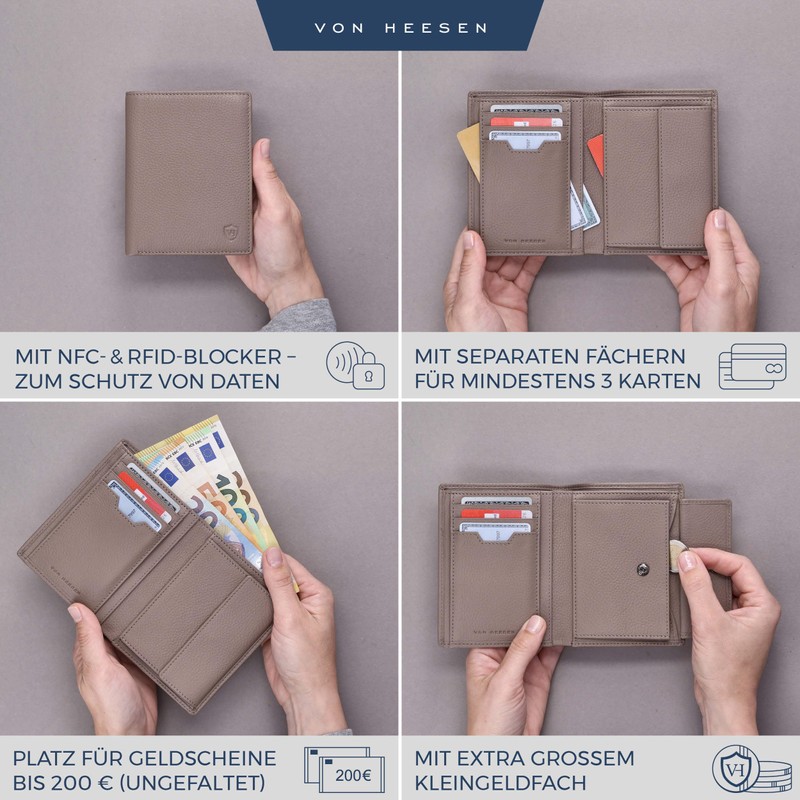 VON HEESEN Men's Leather Wallet with RFID Protection - Genuine Leather Wallet for Men - Women's Wallet, taupe, Portrait Medium (Bifold)