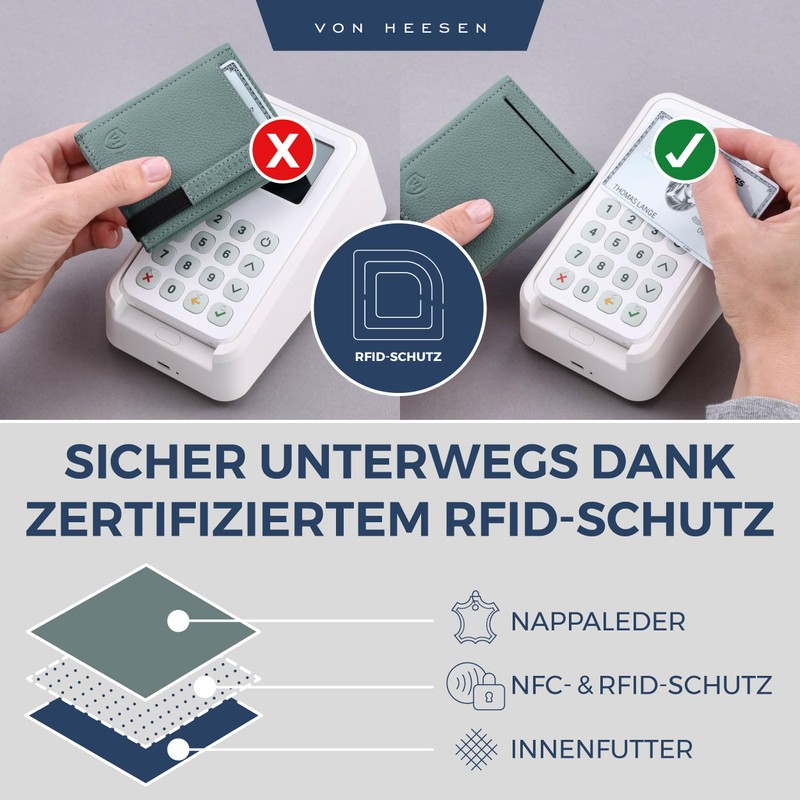 VON HEESEN slim wallet, Turquoise (Silver Pine), Without coin compartment