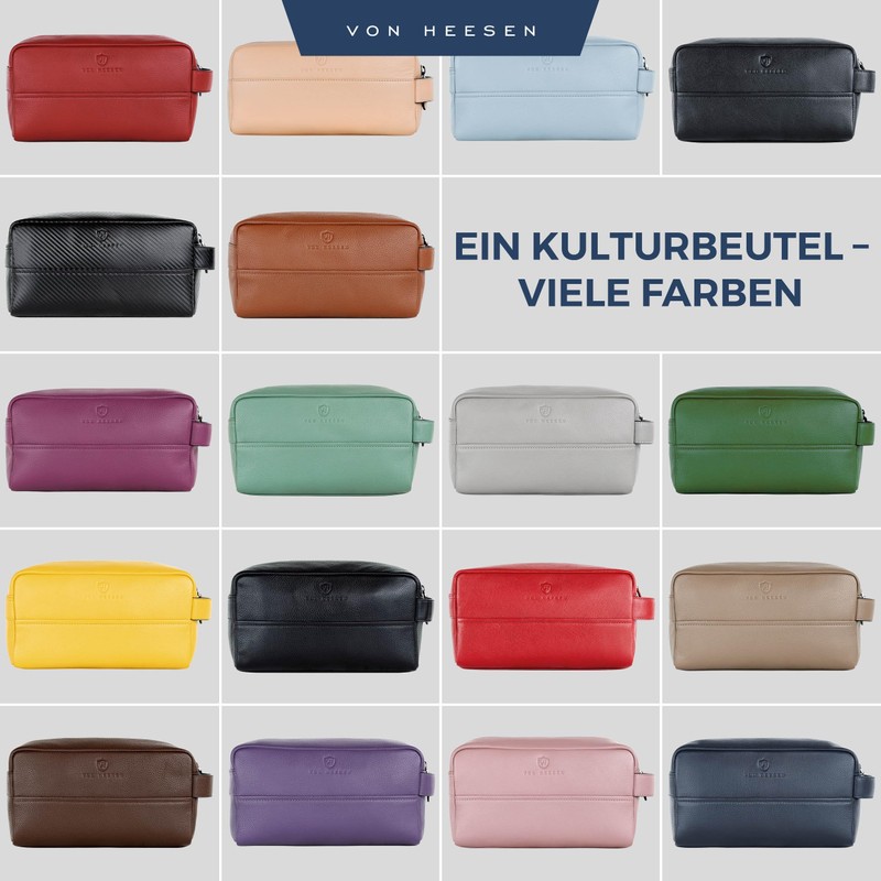 VON HEESEN Toiletry Bag Leather Toiletry Bag for Men and Women - Genuine Leather Necessaire Ideal for Travel - Wash Bag and Cosmetic Bag, Green, 1 main compartment