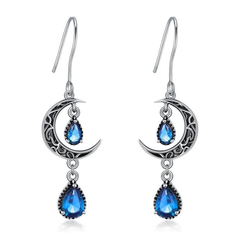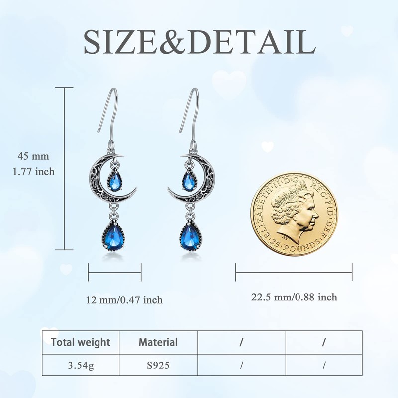 - SPECIFICATION: These aquamarine moon earrings are only 3.74g (pair). Celtic Moon Drop Earrings Size: 45*12mm (LxW). Sparkle and gracful celtic earrings for women every day wearing.
