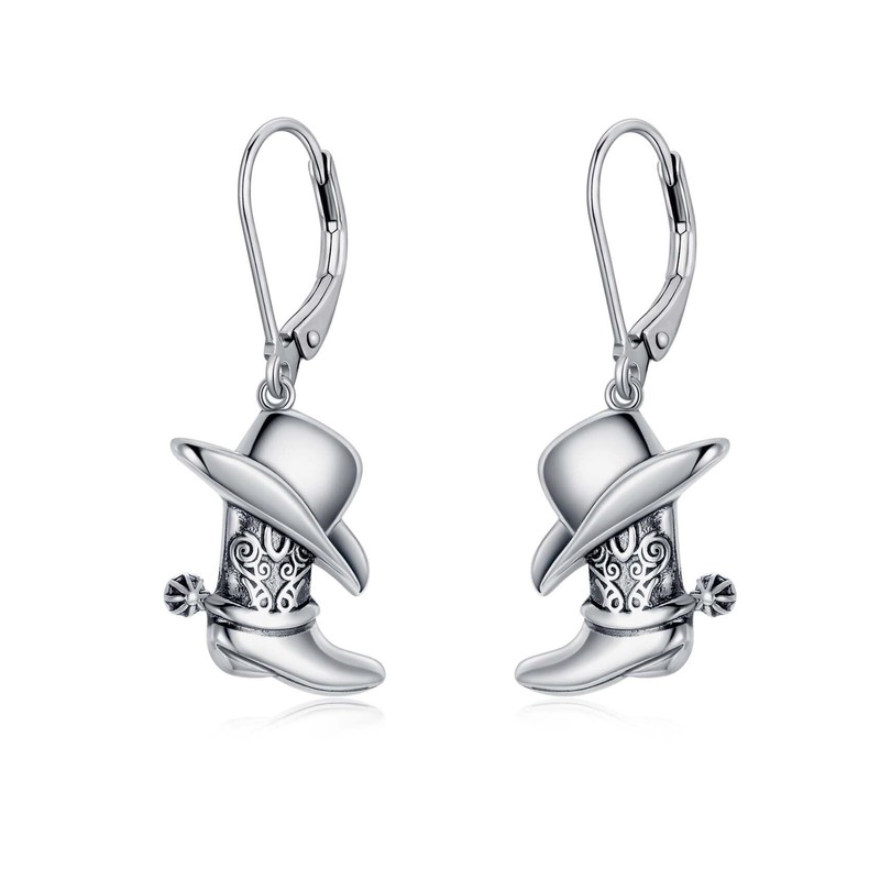 VONALA Cowgirl Sterling Silver Western Cowboy Boot Dangle Earrings