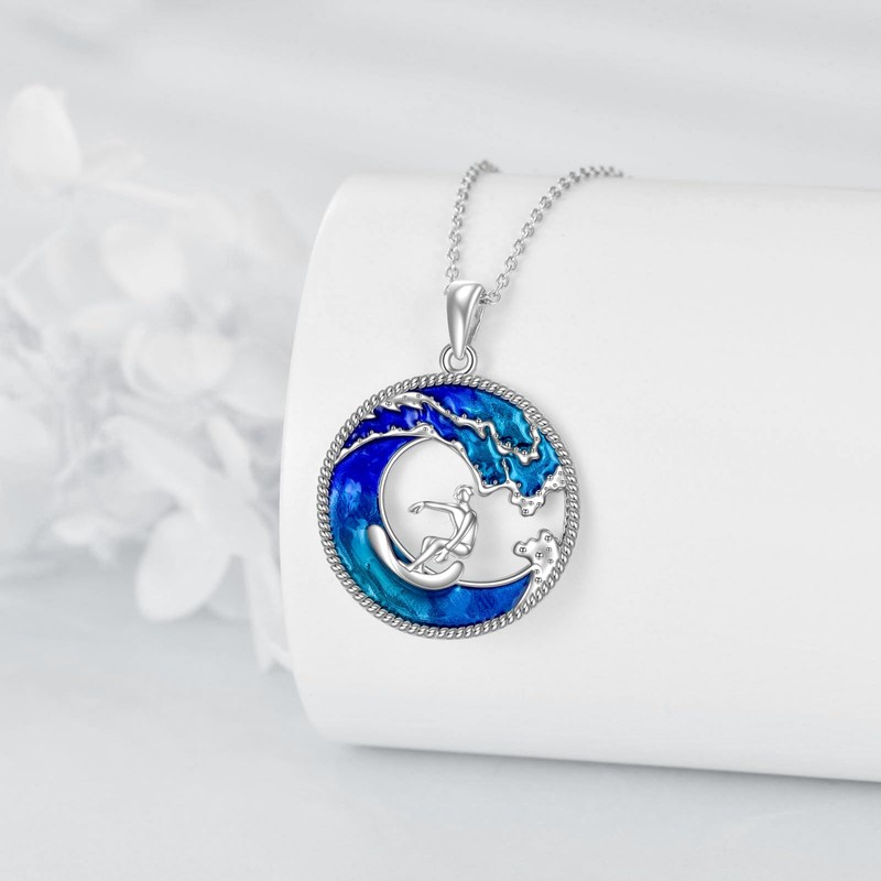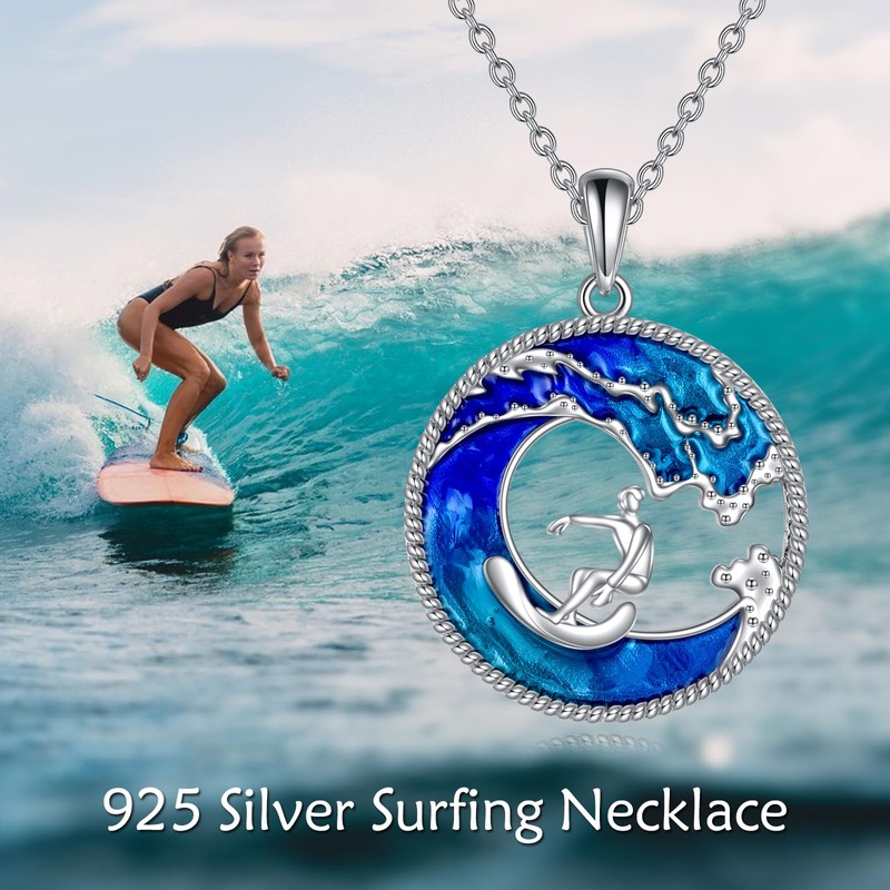 - 🌊MATERIAL: These surfer necklace is made of S925 sterling silver plus blue ocean wave around, all part is hypoallergenic and comfortable, surfboard necklace for sensitive skin women.