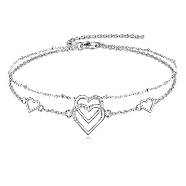 - Diseño: el símbolo del corazón es un símbolo de amor y romance, y con la exquisita tobillera de corazón de doble cadena de plata de ley, tu amor durará para siempre con su delicado diseño de corazón. Así que la tobillera de corazón como regalo será una maravillosa sorpresa.
